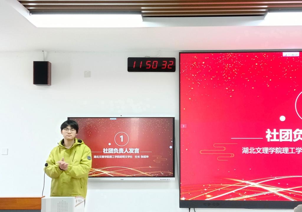 昭明文学社社长张硕坤首先代表承办社团发言,他回顾赛事筹备历程,对本次大赛的成功举办表示欣喜,并对为大赛辛勤付出的老师们和积极参与的同学们表达了感谢。张社长指出,本次大赛的主题为“烟火耕读,心向天下”,就是要鼓励广大同学以文字为载体,寄托青春思绪,展现青年担当,希望大家能够在文学道路上不断探索,追求卓越。