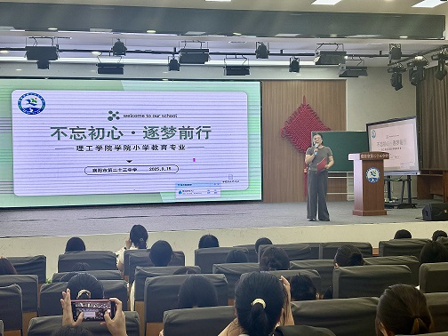 随后,全体师生铿锵有力的集体宣誓声响彻校园,为这一天注入了振奋人心的力量。仪式结束后,学校教研室袁丹主任以《不忘初心,逐梦前行》为主题主持召开欢迎会。肖舜尧校长在致辞中提出三点殷切期望:希望同学们从“观察者”转变为“思考者”,主动洞察教育现场;从“教室助理”成长为“教师伙伴”,积极参与教学协作;更要以教师标准严格要求自己,锤炼师德与师能。