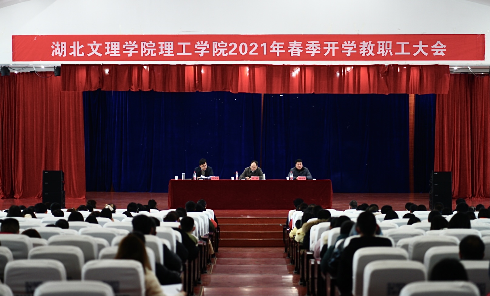 2月26日下午,学校在大学生活动中心三楼报告厅召开2021年春季开学教职工大会。汉江国投党委副书记、副董事长、总经理,国投教育执行董事、总经理徐勇;汉江国投总经理助理胡钧;智投公司党支部副书记、副总经理徐敏及我校全体教职员工参会。会议由院长杨海浪主持。