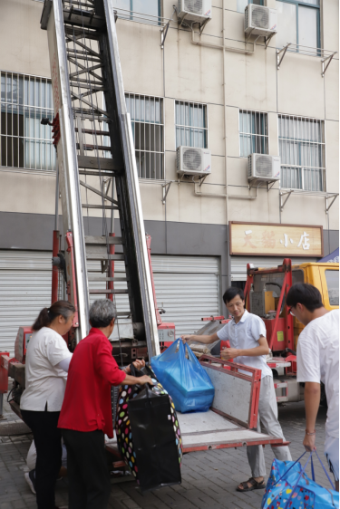 此外,为了解决新生行李搬运不便的问题,学校调集摆渡车来来回回为学生搬运行李。学校还租借云梯帮助高层住宿的学生运送行李。