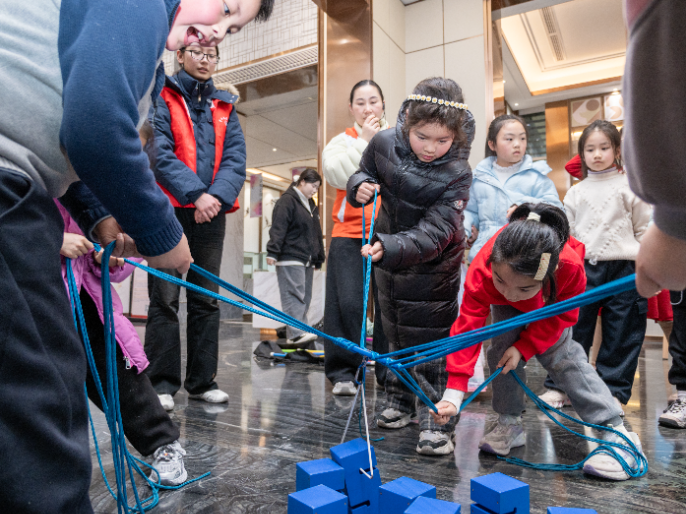 在“趣味团体游戏”区,志愿者们精心设计了“不倒森林”“独行万里”“合力建塔”等经典协作项目。孩子们在志愿者的引导下,从最初的生疏试探到后来的默契配合,欢声笑语不绝于耳。这些游戏不仅是简单的娱乐,更在无形中融入了沟通、信任与团队协作的核心要素。通过共同面对挑战、解决问题,孩子们在运动中拉近了彼此的距离,真切感受到了集体凝聚的力量与合作的喜悦。