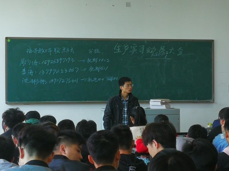 实习指导老师李涛做做实习生产动员讲话。他详细介绍了本次生产实习的带队老师、实习持续的时间、实习地点以及实习安排等方面情况。