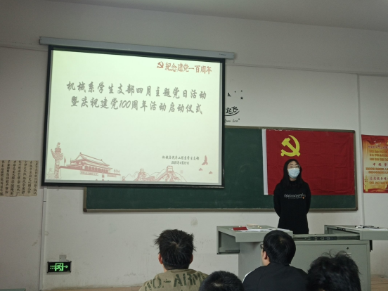 开展党史学习教育是庆祝建党100周年系列活动中的重要部分,此外,机械系还将开展探寻革命旧址,传承革命精神,唱响红色歌曲,线上重走长征路等活动。