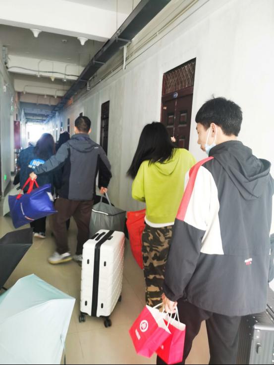 搬运前一天,党支部成员共同商定一对一搬运帮扶方案,提前联系帮助对象,确保高效的帮助每一位外出实习学生。虽然在搬运过程中,行李沉重,楼层比较高,但志愿者们不怕辛苦,在一趟趟搬运中,从不喊累。