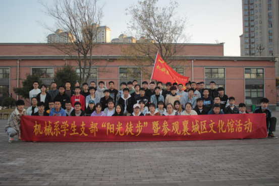 (机械系 胡旭涛)为了庆祝中国共产党成立100周年,扎实推进党史学习教育,11月23日,机械系学生党支部开展“传承红色基因,弘扬革命精神”阳光徒步至襄城区文化馆进行参观学习。