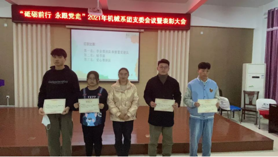 (机械系 胡旭涛)为了提高团员的思想觉悟,增强团支部的凝聚力,11月28日,机械与汽车工程系在一教104教室举办团支委会议暨表彰大会。