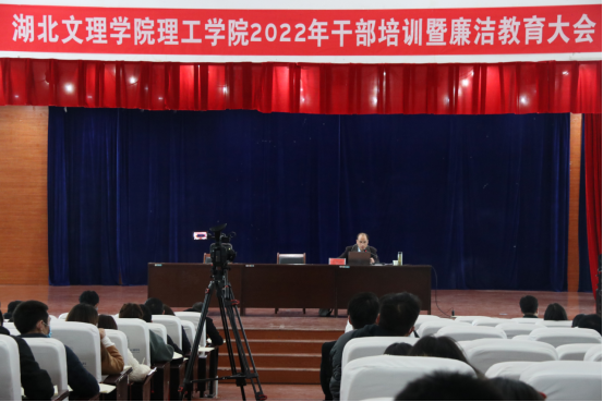 3月25日下午,学校在大学生活动中心三楼报告厅召开2022年度干部培训暨廉洁教育大会。会议邀请湖北文理学院纪委副书记王悦洲同志作了以“明准则 守纪律 做四有好老师”的专题报告。校领导、中层干部、教师、辅导员等130余人参会。会议由党委委员、院长助理、党群工作部部长贾娴雅同志主持。