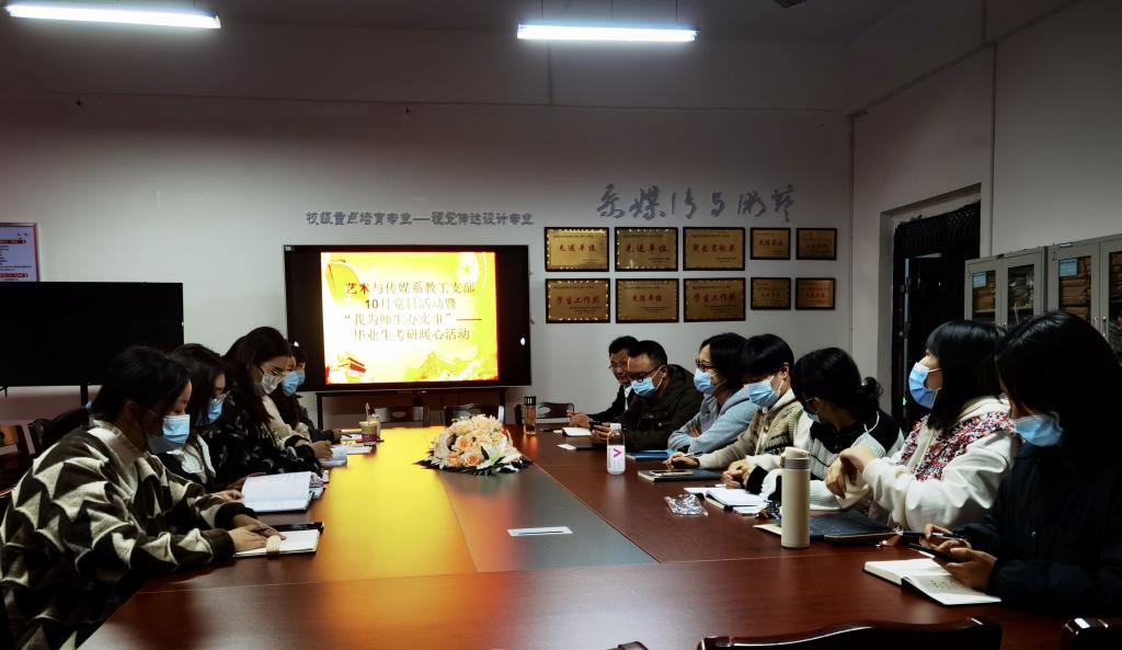 10月14日,艺术与传媒系教工支部在4教325会议室开展10月份主题党日活动暨“我为师生办实事”——毕业生考研暖心活动。此次会议除了开展诵读党章、学习文件外,针对毕业生考研开展研讨,以实际行动践行“我为师生办实事”的承诺,把学习党史同服务师生、推动工作结合起来,为深入落实学党史办实事,助力考研学子积极备考,圆梦研途。
