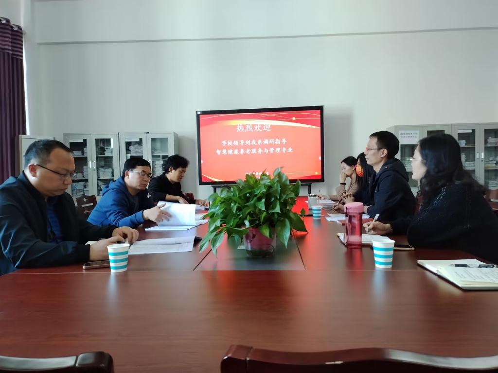 (经管系 安慰)10月31日下午,校党委书记叶永涛、常务副院长耿帮才、教务处处长胡阳一行莅临经管系开展智慧健康养老服务与管理专业建设调研。