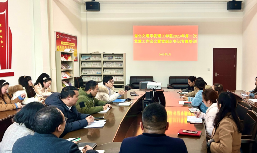 (组织部 杨鹏)2月24日下午,学校在大学生活动中心一楼党员活动室召开2023年第一次党建工作会议暨党组织书记专题培训。各党总支书记、直属教工支部书记、各支部书记、组织部全体人员参会。会议由党委委员、院长助理贾娴雅主持。