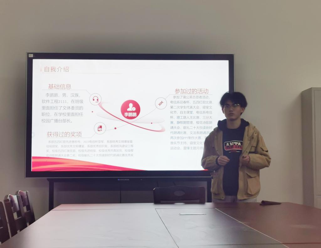 (电信系 李颖)为认真贯彻落实关于加强新形势下党员发展和管理工作的要求,切实严把发展党员“入口关”,确保发展党员质量,4月6日晚,电信系党总支在J4-231举行了2023年度上半年重点培养对象审核答辩会。电信系党总支副书记李颖、教工支部书记朱艳艳、学生第一支部书记彭亚岚、分团委书记王琳琳、部分教师党员代表和34名拟重点培养对象候选人选参加了本次答辩会。会议由电信系学生第二支部书记兼教工支部纪检委员刘圆鑫主持。
