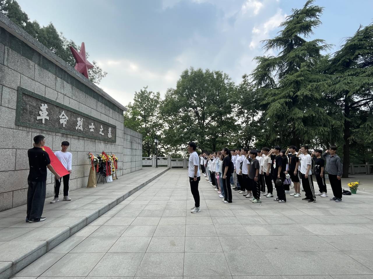 参观结束后,全体学员来到革命烈士墓前,进行庄严宣誓及献花祭扫。革命烈士陵园松柏苍翠、庄严肃穆,同学们面向烈士纪念碑整齐列队,高举右手,面向鲜红的党旗庄严宣誓。通过重温入党誓词,大家深深感受到共产党员的神圣使命、责任和荣耀,更加坚定跟党走的信心与决心。