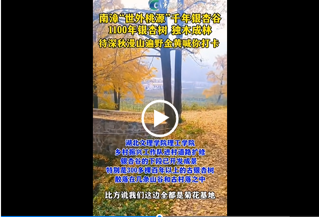 独木成林!1100年银杏树藏在深山,秋时漫天金黄喊你打卡 (记者:方兵 通讯员:王寅龙 戴孟廷 编辑: 袁箴 审核:李丹)
