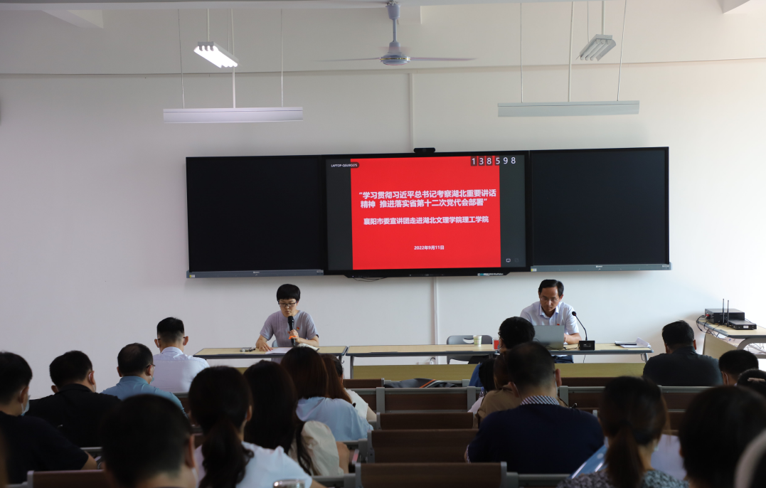 湖北日报客户端讯(通讯员尚秀英 戴孟廷)9月11日下午,学习贯彻习近平总书记考察湖北重要讲话精神,推进落实省第十二次党代会部署宣讲会议在湖北文理学院理工学院举行。襄阳市委宣讲团成员、湖北文理学院教授、博士、教务处处长聂军到该校开展宣讲。该校校领导、中层干部、思政课教师、辅导员代表参会。会议由该校党委委员、院长助理贾娴雅主持。