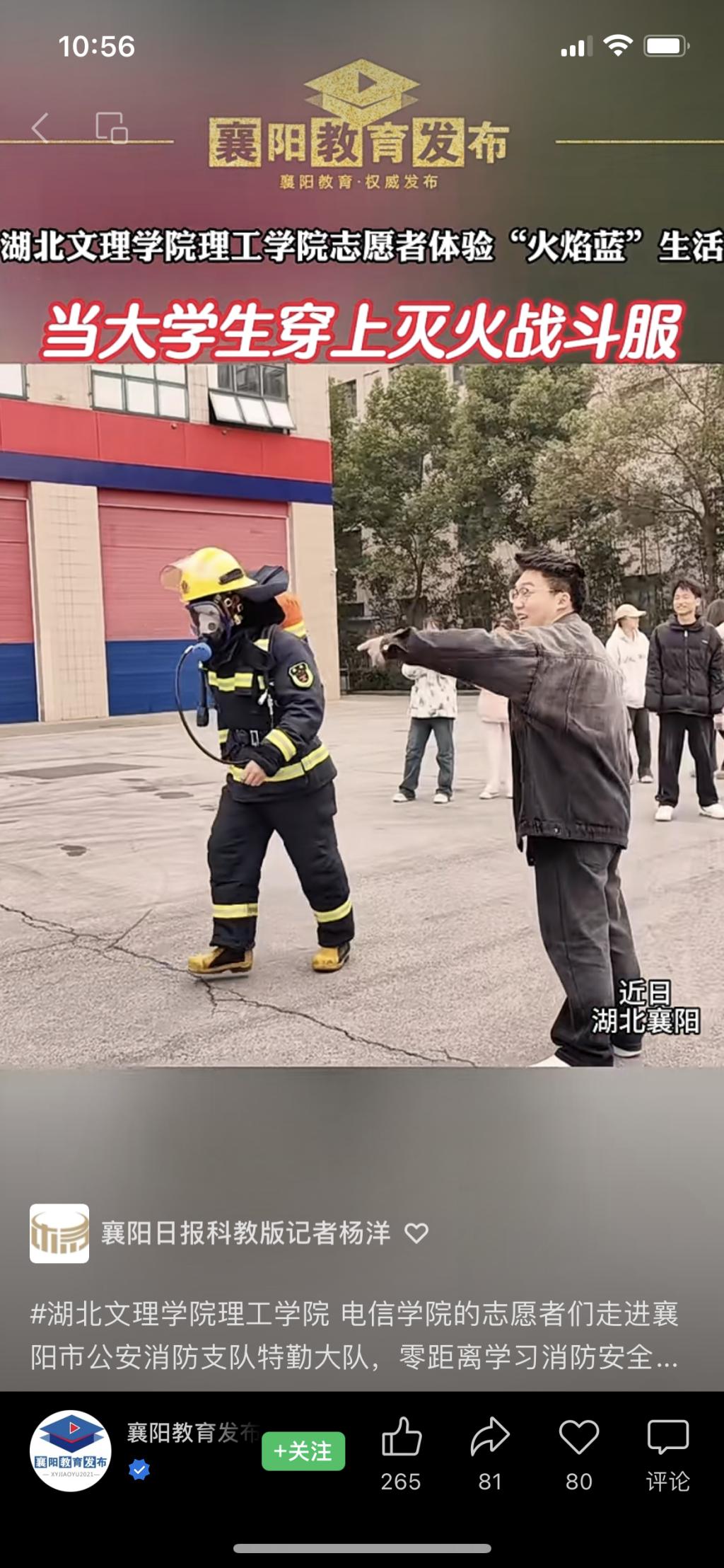 (通讯员肖乃傲 全媒体记者杨洋 剪辑严巍)湖北文理学院理工学院电信学院的志愿者们走进襄阳市公安消防支队特勤大队,零距离学习消防安全知识。