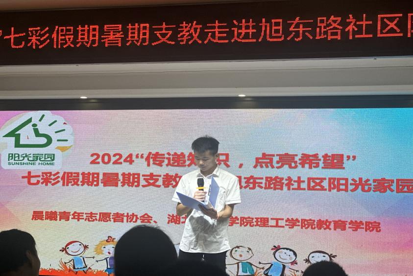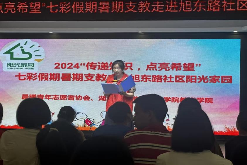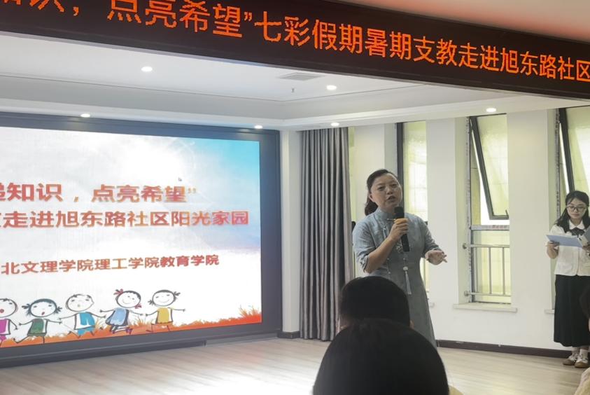 (通讯员 陈曦 吴梦侨 李原栋)2024年6月20日,湖北文理学院理工学院教育学院、晨曦青年志愿协会“传递知识,点亮希望”七彩假期支教团的启动仪式在襄阳市旭东路社区阳光家园隆重举行。