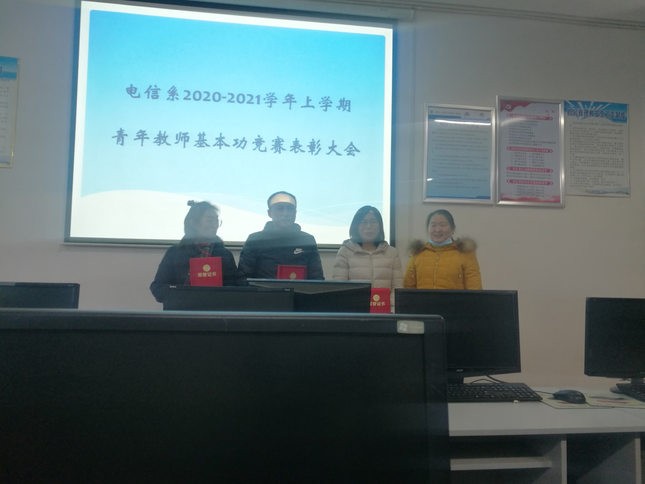 此次竞赛分为教案评比、教学水平评比和综合实力评比。经过为期三周的激烈地竞争,12月1日下午,电信系在4教241实验室举行了教师基本功大赛表彰大会。