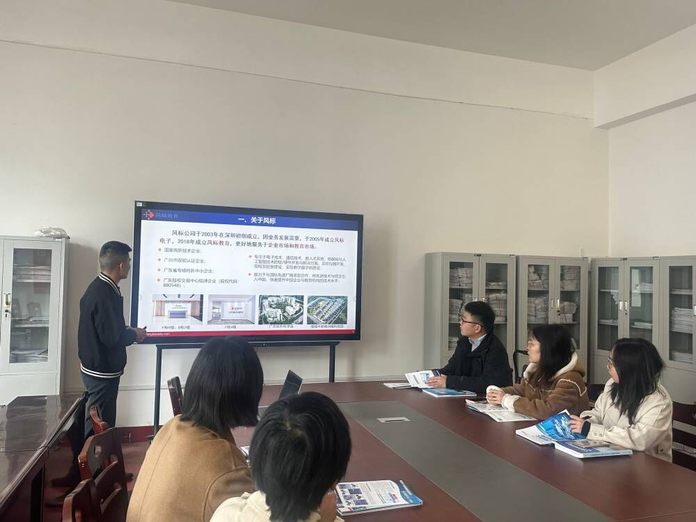 交流中,朱院长介绍了我院电子信息工程专业、通信工程专业的基本情况以及校企合作开展情况。广州风标电子技术有限公司的叶工介绍了企业的文化,公司现状、发展、产品和服务。