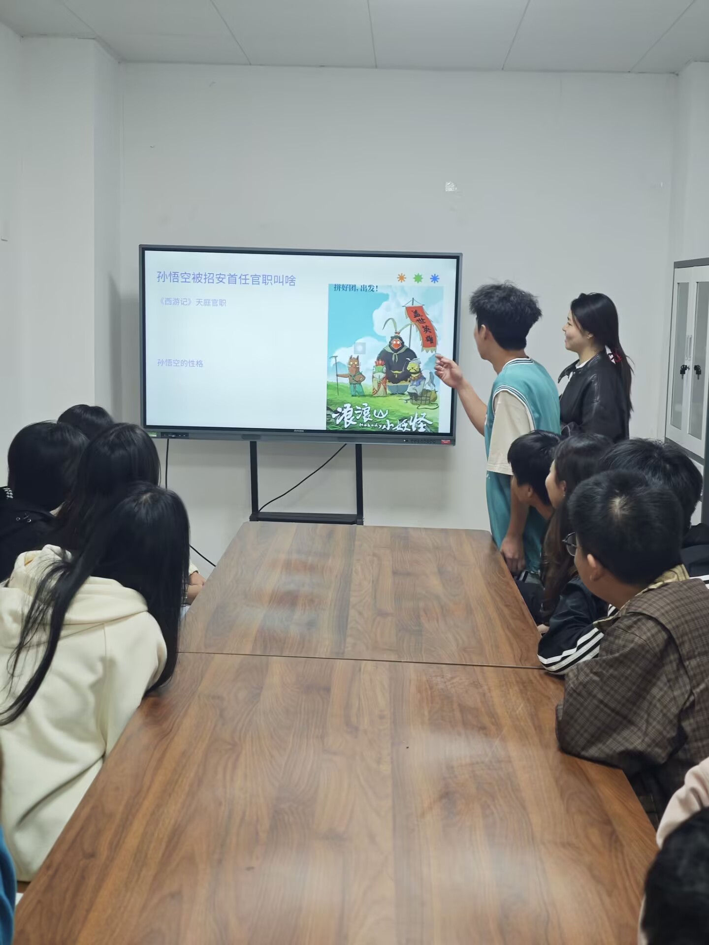在“抢答热身”环节,同学们积极举手、踊跃参与,迅速进入状态;“基础进阶”中,《红楼梦》作者曹雪芹、“倒拔垂杨柳”的鲁智深、《骆驼祥子》中祥子的职业等题目引发热烈讨论;“难度爬坡”环节更是精彩纷呈,孙悟空的首任官职“弼马温”、《故乡》中的“木偶人”闰土等题目将现场气氛推向高潮;最后的“决胜挑战”中,“草船借箭”靠大雾天气、“简·爱中疯妻被关在阁楼”等题目更是考验选手的综合能力。