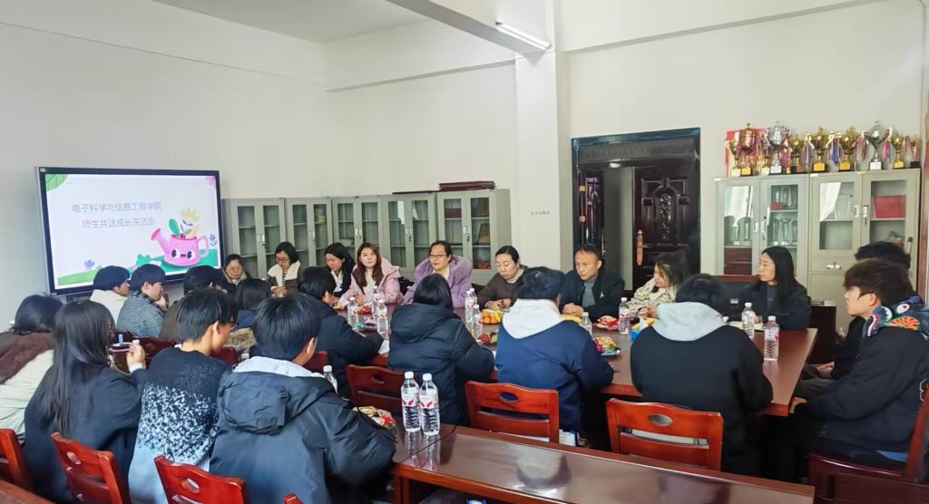 (电信学院李颖)12月19日下午,电子科学与信息工程学院在J4-231会议室举办“师生共话成长”主题茶话会。学院院长、党总支书记、教学副院长等教师代表,与来自各年级、各专业的二十余名学生代表围坐交流,围绕学风建设、学业规划、科技创新、生涯发展、生活服务等话题展开深入交流。