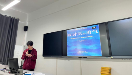 杨立同学结合《等一切风平浪静》,探讨了在快节奏社会中保持内心宁静的重要性,引发大家对当代青年心理调适与情绪管理的共鸣;艾年涛同学通过《被讨厌的勇气》,阐述了心理学中自我接纳的观点,激励同学们勇敢面对人际与成长中的困惑;管勤浩同学分享了《正是橙黄橘绿时》中平凡生活的温暖瞬间,带领大家体味日常中的诗意与美好;刘文杰同学则以《人生总会有答案》为引,分享了在迷茫与选择中如何保持信念、寻找方向的心得。