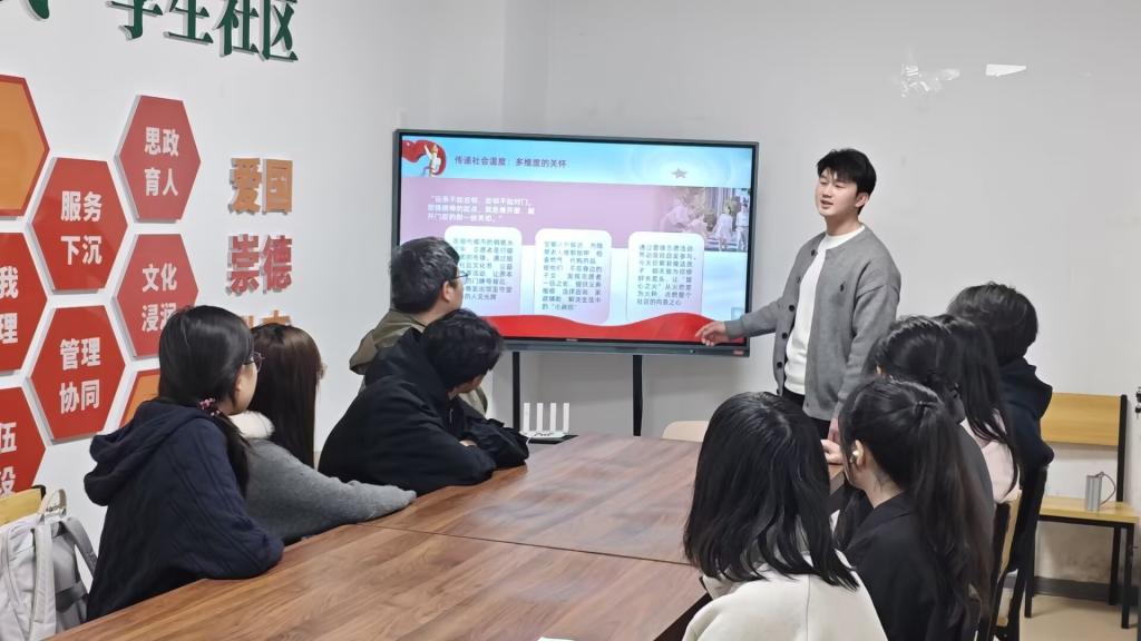 分享中,马景涛同学围绕“甘做一颗永不生锈的螺丝钉”这一精神内核展开讲述,以“大国工匠”故事为引,帮助成员们理解责任、坚守与奉献的意义。他表示,雷锋精神不仅体现在帮助他人、服务社会上,也体现在对本职任务的认真对待和对初心使命的始终坚守。