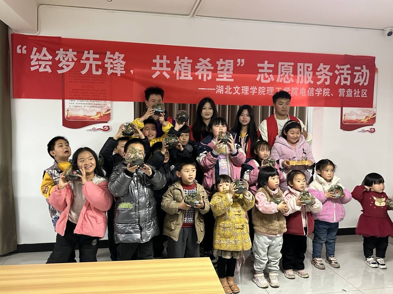 (电信学院 肖乃傲)3月10日,在植树节来临之际,湖北文理学院理工学院电信学院组织大学生志愿者前往营盘社区开展“绘梦先锋 共植希望”绿色环保志愿活动。