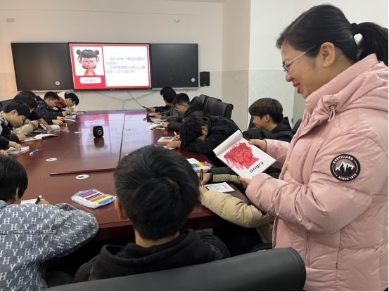 首场活动以“哪吒情绪探索之旅”为主题,于11月21日下午开展。大学生团队通过播放《哪吒之魔童降世》片段、引导涂色、情绪对话等方式,帮助20余名六年级至八年级学生识别并接纳自身情绪。学生在涂色中表达愤怒、快乐与平静,在心理老师指导下学习“深呼吸”等情绪调节方法,最终通过小组分享与集体赋能,树立“我命由我,情绪由心”的积极信念。