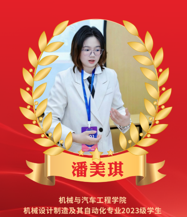潘美琪同学在学习中沉淀自我,在竞赛中突破自我,在科研中提升自我,在实践中成就自我,以不懈努力完成了从新生到科创骨干、优秀学生干部的蜕变。谈及成长,她坦言:“青春的底色是奋斗,机械的匠心是实干,每一次钻研、每一次攻坚、每一次奉献,都是成长最珍贵的印记。”