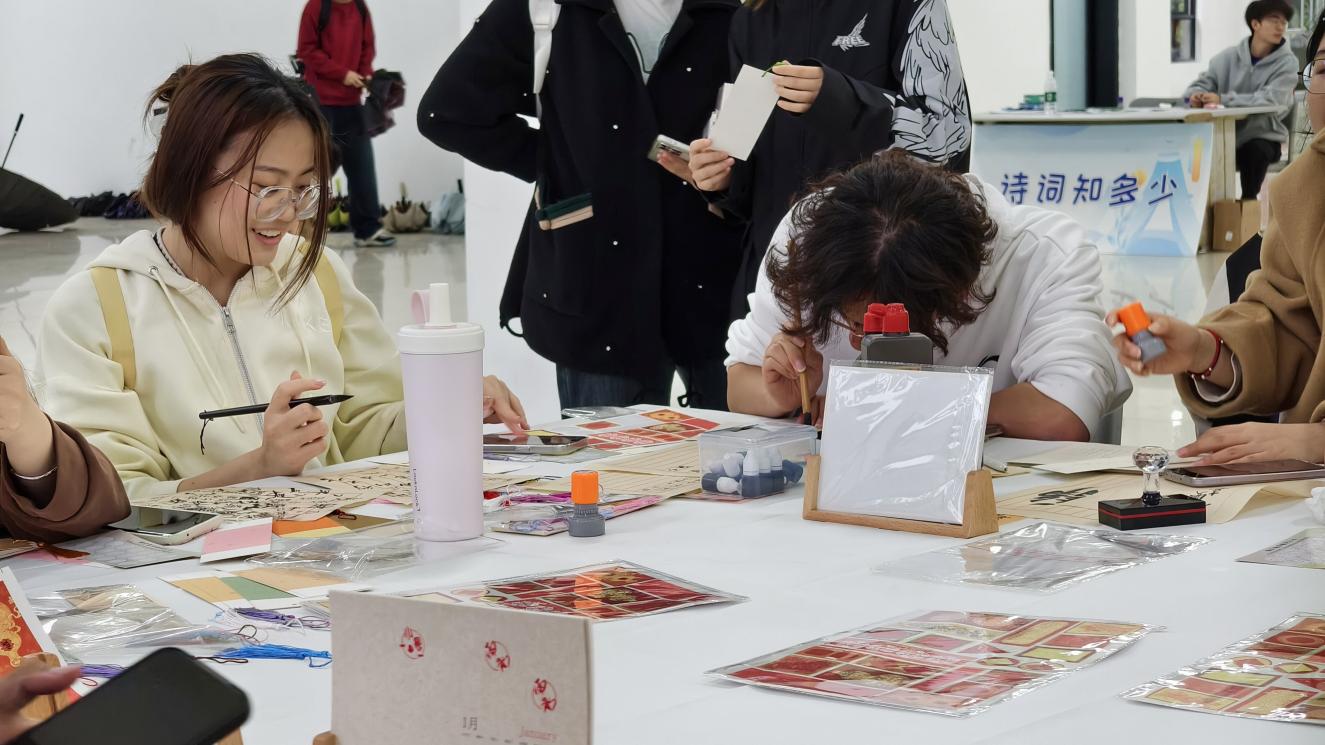 本次活动设置了暖场导入、全员诗词闯关、动手实践创作与总结寄语四大环节。活动通过富有趣味性和参与感的闯关挑战与创意实践,吸引了众多同学踊跃参加,现场气氛热烈。