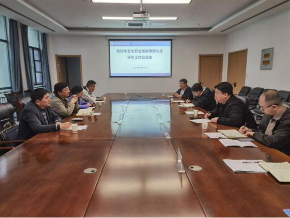 随后,双方在图书馆5楼会议室召开“高校毕业生职业技能等级认定评价工作交流会”,会议由副校长周伟主持。会上,培训管理办公室主任龚程、教学科研部潘晓虎老师分别汇报我校职业技能培训管理、教学科研与技能人才培养融合、职业技能鉴定中心筹建等相关工作情况。