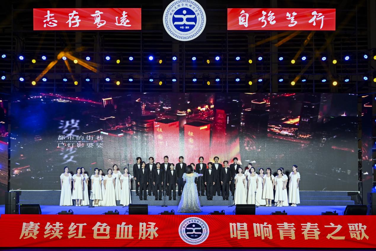 来自各二级学院的12支大、小合唱代表队依次登台演唱。《走向复兴》气势恢宏、《当那一天来临》铿锵有力、《我和我的祖国》深情悠扬、《立春》朝气蓬勃,一首首红色经典与青春旋律交相辉映,展现出理工学子爱党爱国、昂扬向上的精神风貌。比赛尾声,大学生艺术团声乐部带来《灯火里的中国》,将现场氛围推向高潮。