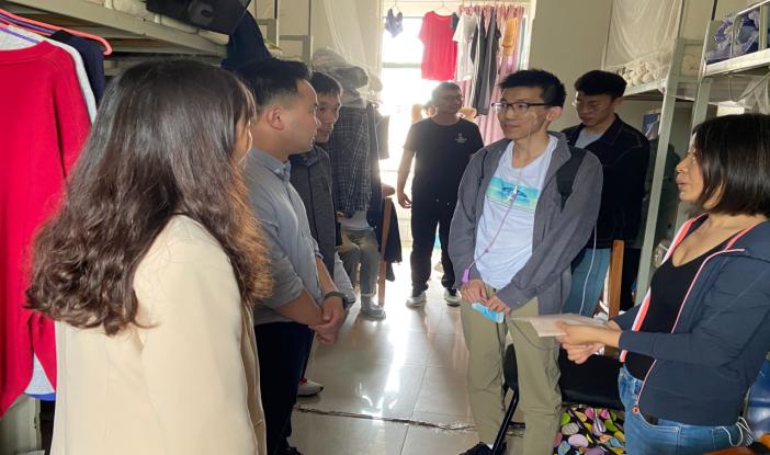 (建工系 路扩)5月26日中午,建工系副主任刘琦良、党总支副书记付明星一行来到宿舍看望了患有克罗恩病的毕业生苏思维同学。