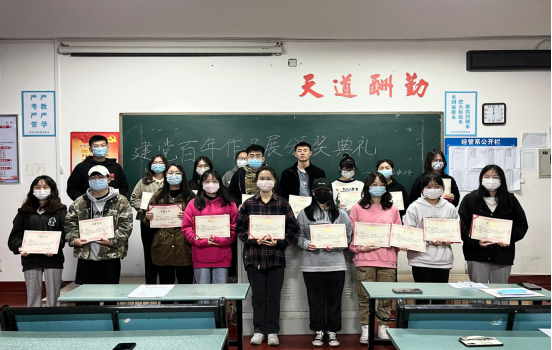 (书画协会 董佳岚)4月14日晚,大学生书画艺术协会社团在J4-312举办建党百年美术作品展颁奖典礼暨喜迎党的二十大书画展览启动仪式,协会指导教师柴昭华、社团全体人员参加。