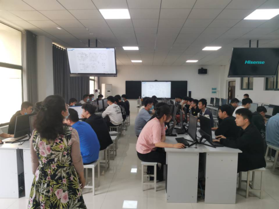 比赛中,参赛选手们熟练地运用机械绘图软件绘制三维模型,体现出机械系同学在专业竞赛上认真细致,青春向上的风采。机械系副主任黄能会、教学副主任丁文文、机械系实验员和赛事指导教师进行了巡查监考,即保证比赛的公平公正,又体现了机械系对该比赛的重视。
