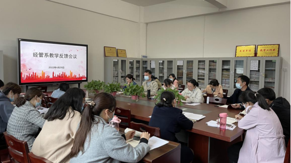 (经管系 安慰)为进一步提高经管系教师整体教学能力和教学水平,促进学校高质量发展,4月28日下午,经济与管理学系召开了教学评课反馈工作会议,特邀校级督导刘学林教授对经管系教师教学过程和能力进行反馈,共商教学提质良策。经管系全体专职教师参加会议。