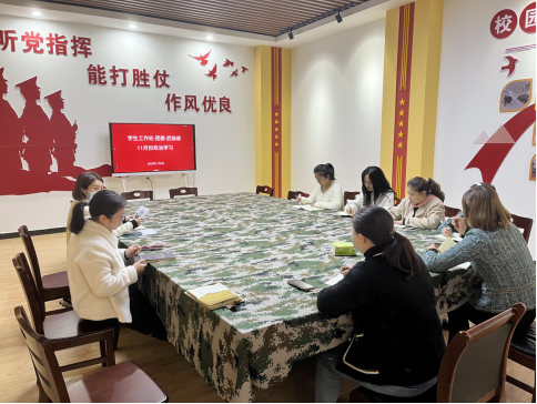 (学生工作处 曹淑娟)11月3日上午,学生工作处在征兵工作站开展11月份政治学习,专题学习党的二十大精神。