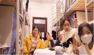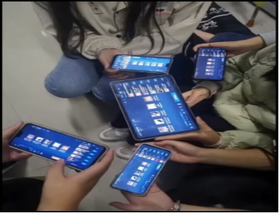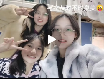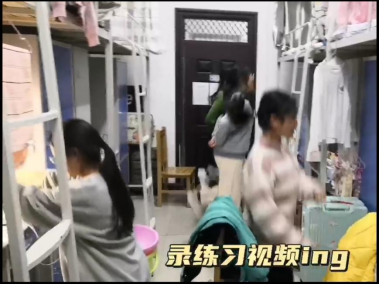 202室同学们正在拍摄口语线上作业,她们充满活力,享受友谊带来的快乐。