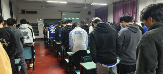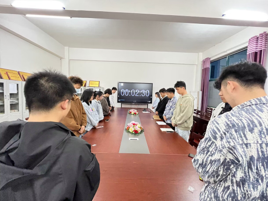 接着,全体学生集体庄严默哀三分钟,向英烈前辈们致以深深的敬意和无限的哀思,深切表达对英雄的敬仰和缅怀之情。