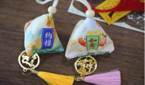 经过一个多小时的认真制作,一个个精致的香囊被呈现出来,浓浓的艾草清香弥漫开来,沁人心脾。
