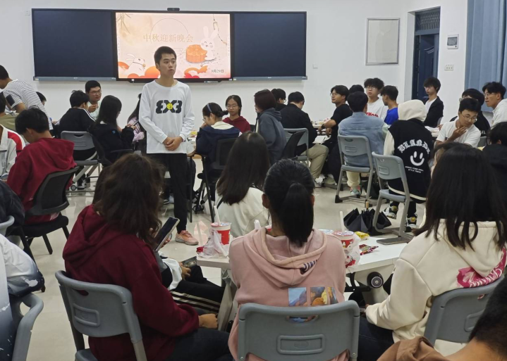 随后,同学们开展了竞猜小游戏、歌曲串烧等。小游戏围绕“中秋由来”“中秋古诗词”等展开。同学们热情满怀,纷纷举手抢答,掀起一波波高潮。晚会结束时,机械系为同学们送上中秋月饼和小零食,让同学们感受浓浓的过节情谊与学校关怀。
