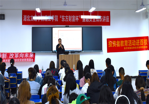 (经管系 杨秀菊 尹江) 2023年“东方财富杯”全国大学生金融安全知识网络比拼活动正在如火如荼地开展。为丰富学生金融安全知识、加深学生对于赛事的了解,我校于10月24日在一教307教室举行“东方财富杯”金融安全知识讲座。东方财富证券股份有限公司襄阳长虹路证券营业部总经理钱伟庚主讲。