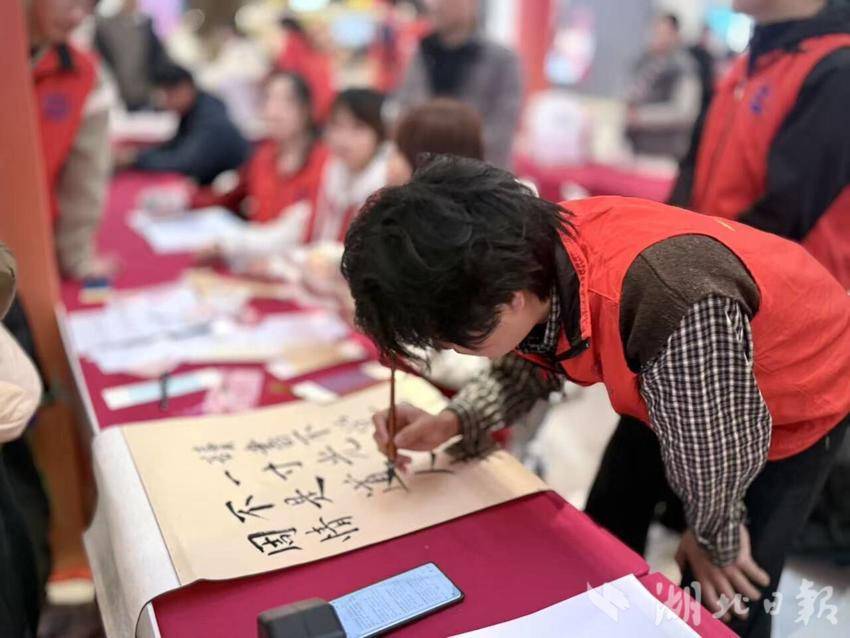 活动现场,志愿者们精心布置场地,围绕手写定制与古文字拓印两大核心内容开展服务。志愿者挥毫泼墨,为市民书写“平安喜乐”“金榜题名”等吉祥祝福语及经典诗词、名人格言,同时细致讲解古文字形源流,让传统文化在互动中鲜活呈现,更让志愿者们在校的读书成果得以呈现。特色体验区吸引众多市民驻足参与,大家近距离感受中华优秀传统文化魅力,亲手创作专属作品,现场氛围热烈温馨。志愿服务过程中,志愿者们主动热情、分工协作,耐心解答群众疑问、贴心引导体验流程,以细致周到的服务赢得现场群众认可,成为活动中一道亮丽的青春风景线。