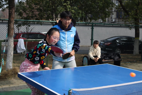 趣味运动环节精彩纷呈。乒乓球单双打比赛里,志愿者与学员默契对打,赛场之上温情与活力交织;两人三足活动中,红布条联结起彼此的脚步,整齐的口号彰显着残健双方的深厚情谊;螃蟹赛跑项目里,大家背靠背手牵手护球侧身前行,心往一处想、劲往一处使,生动诠释了同心协作的深意,现场欢声笑语不断。