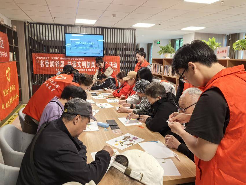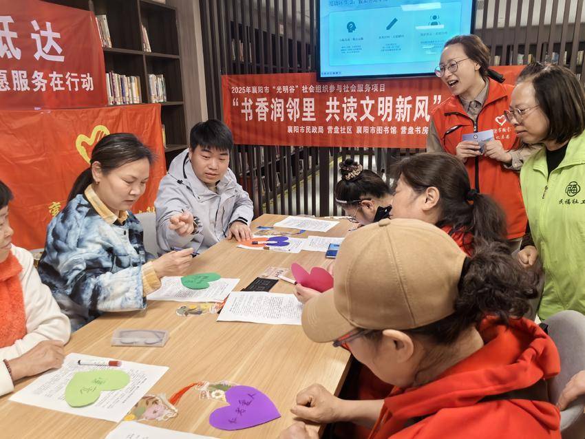 湖北日报客户端讯(通讯员牛艳婷、潘堃)4月20日下午,檀溪街道营盘社区联合民福社工、襄阳市图书馆、湖北文理学院理工学院电信学院“蒲公英”志愿服务队、向阳残疾人艺术团等,在营盘城市书房举办世界读书日主题助残融合活动。活动邀请社区居民20余人共同参与,用书香传递温暖,用互动凝聚善意,让文明新风浸润邻里。