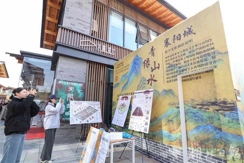 襄水街是襄阳首个滨水生态艺术街区,这也是该校连续第二年在校外举办毕业设计展。襄王府、襄阳城墙、襄阳贡院……走进数字展馆,襄阳古建筑和文化符号以数字技术一一呈现,青绿山水的鲜明色彩与襄阳古城的历史底蕴交相辉映,让游客沉浸式感受历史文化名城的魅力。