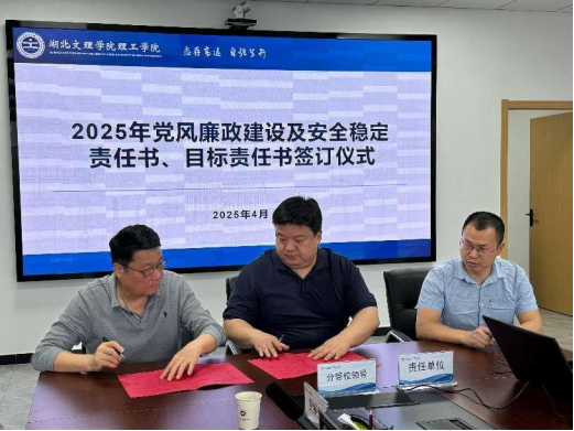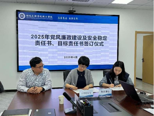 (学校办公室 汤济旖)4月15日下午,学校在图书馆722会议室举办2025年党政廉风建设及安全稳定责任书、目标责任书签订仪式。学校领导班子成员及各教学单位、各职能部门党政负责人参会。