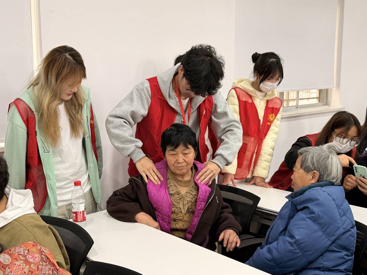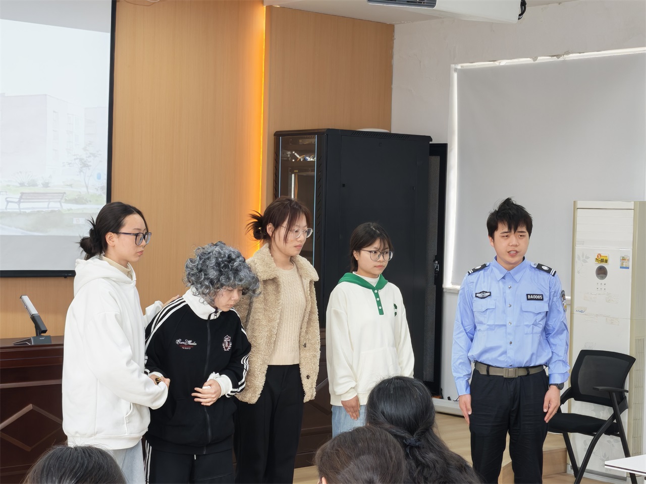 活动现场内容丰富、贴近需求。法学专业学生结合专业特长,自编自演反诈骗情景剧,真实再现“养老投资”“保健品推销”等常见诈骗手法,以生动形式提升老年人防诈意识。学院专业教师开设“健康银龄”康养科普讲堂,系统讲解“三减三健”、慢性病管理与中医穴位养生知识,并穿插有奖问答,增强互动实效。志愿者还开展“一对一”手机安全赋能教学,耐心指导老年人设置防护功能、识别诈骗信息,助力其安全使用智能设备。此外,活动现场同步融入“踩报纸”趣味运动与爱心义剪服务,在轻松互动中为老人提供身心关怀与生活便利,进一步营造了温暖和谐的社区氛围。