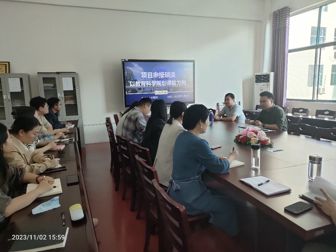 叶处长以省教育科学规划课题为例,从申报通知、课题指南、申报书数据填写注意事项、申报书申报程序及撰写技巧四个方面入手,结合申报文件要求的解读,分享了思路寻找的经验,以自身实际案例出发,剖析了书写申报书的全部要素,为教师如何做科研工作给予了明确直接的讲解和启发。