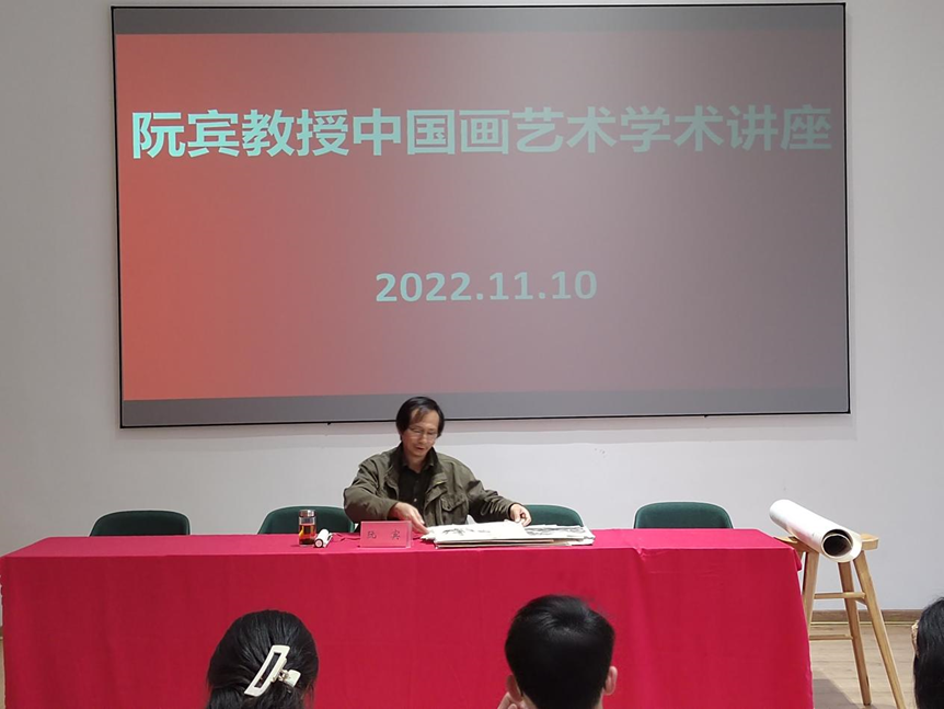(艺传系)2022年11月10日下午3:00时,艺术与传媒系邀请阮宾教授于尹集城南图书馆开展“中国画艺术学术讲座”,讲座由靳铮老师主持,艺术与传媒系全体教师参加。
